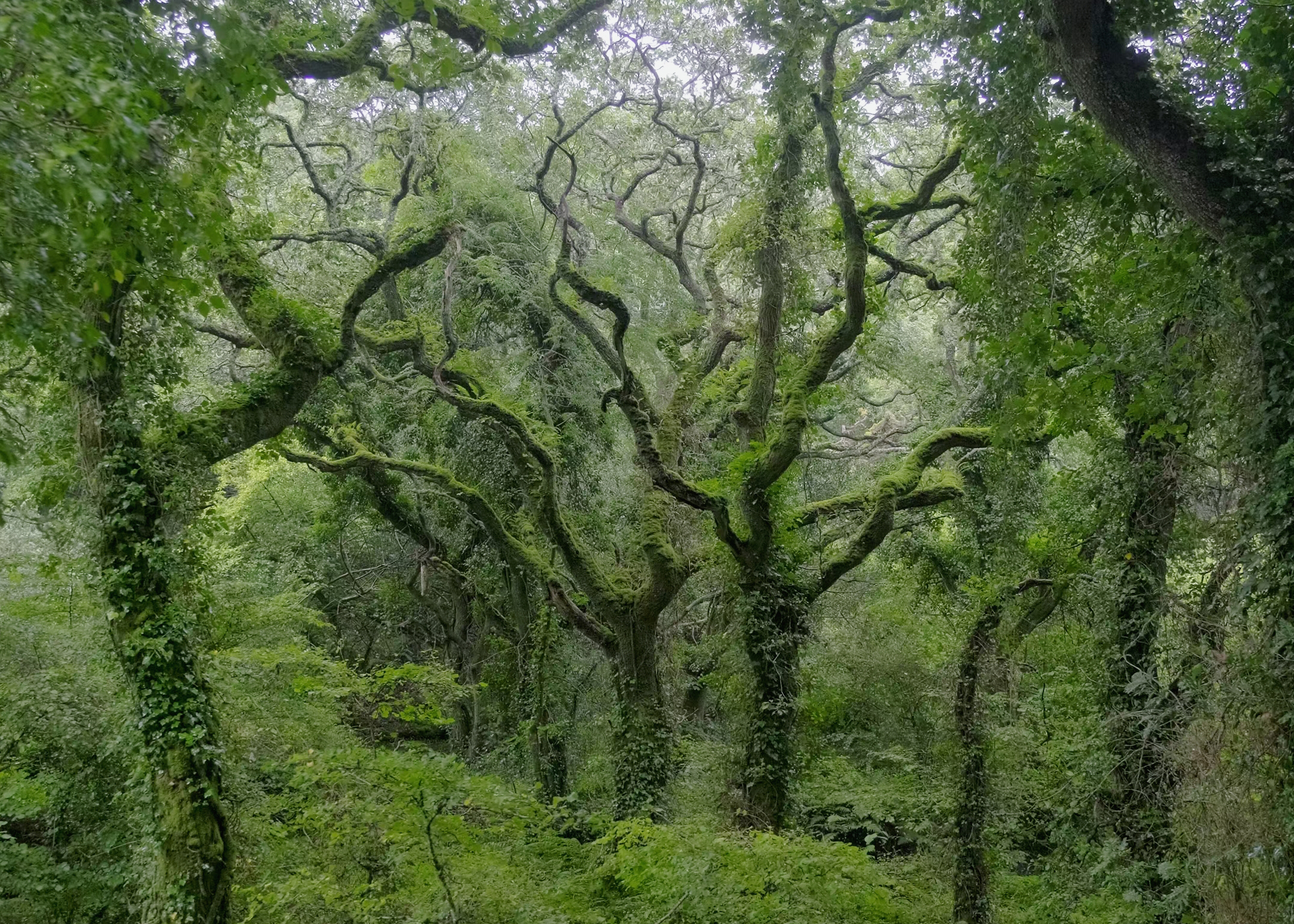 This walk through a temperate rainforest deep in a valley near Gweek explores one of the rarest woodland habitats in the UK. Temperate rainforests (also known as Atlantic or Celtic rainforests) are the remnants of a landscape that would have covered much of West Cornwall, growing only in our high-humidity and mild temperature environment. They are identifiable by the twisting moss-covered branches of sessile oaks and vines, with ferns, mosses and lichens growing along them.